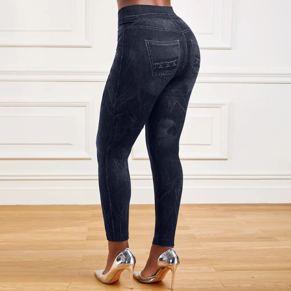 2023 Women‘s Stretch Denim Look Leggings Ladies Elasticated Waist Slim Trousers Pants Plus Size