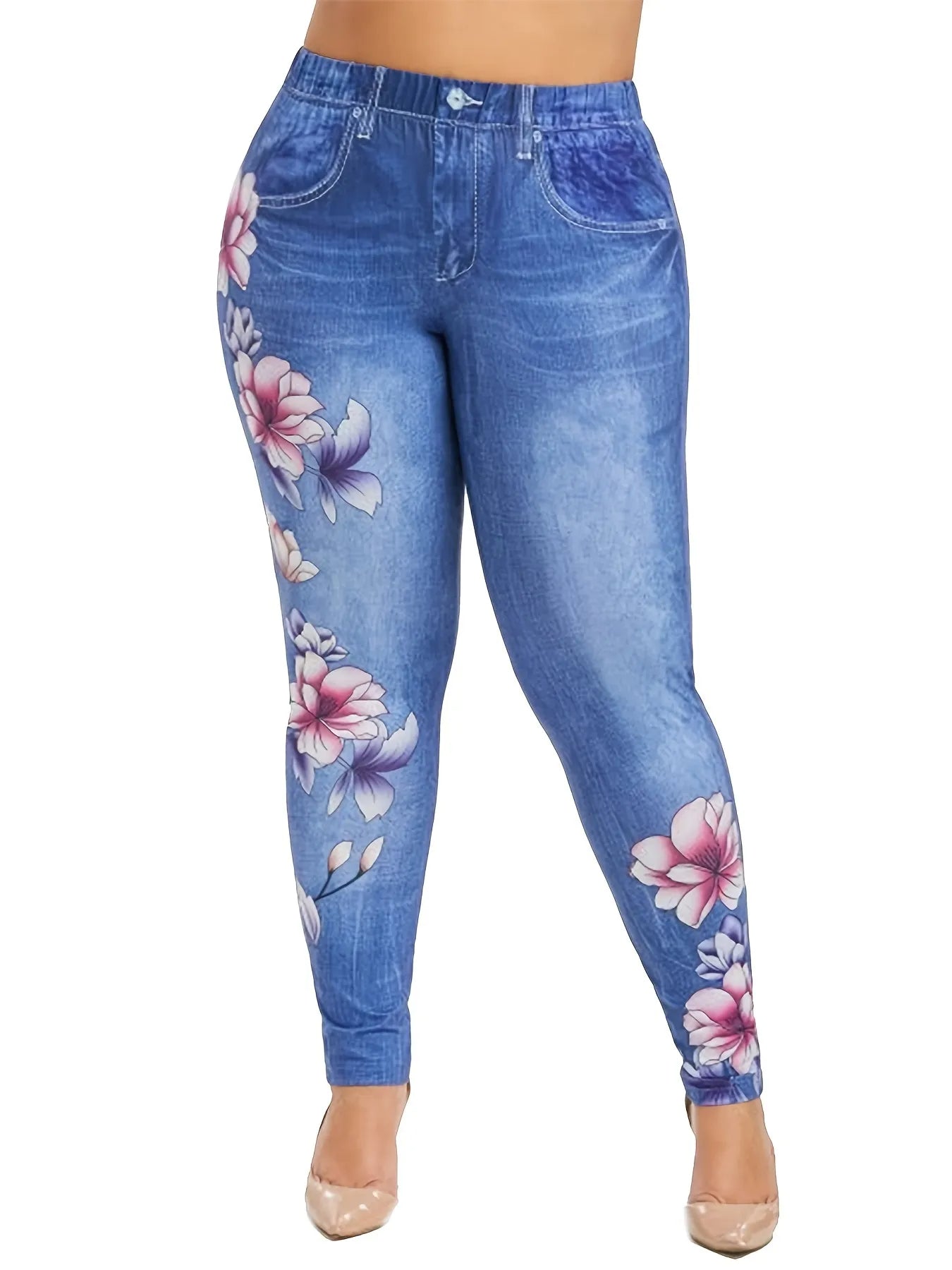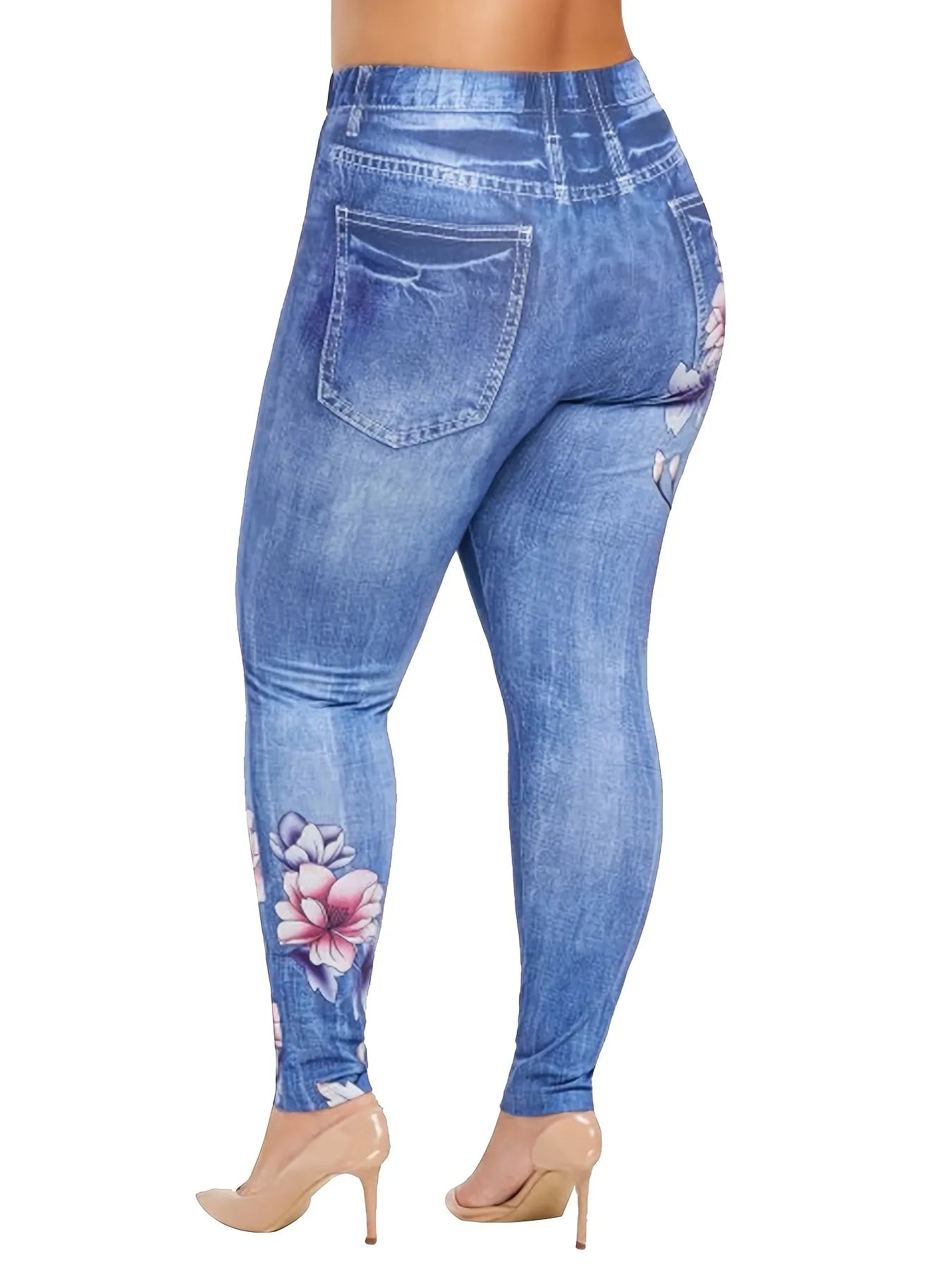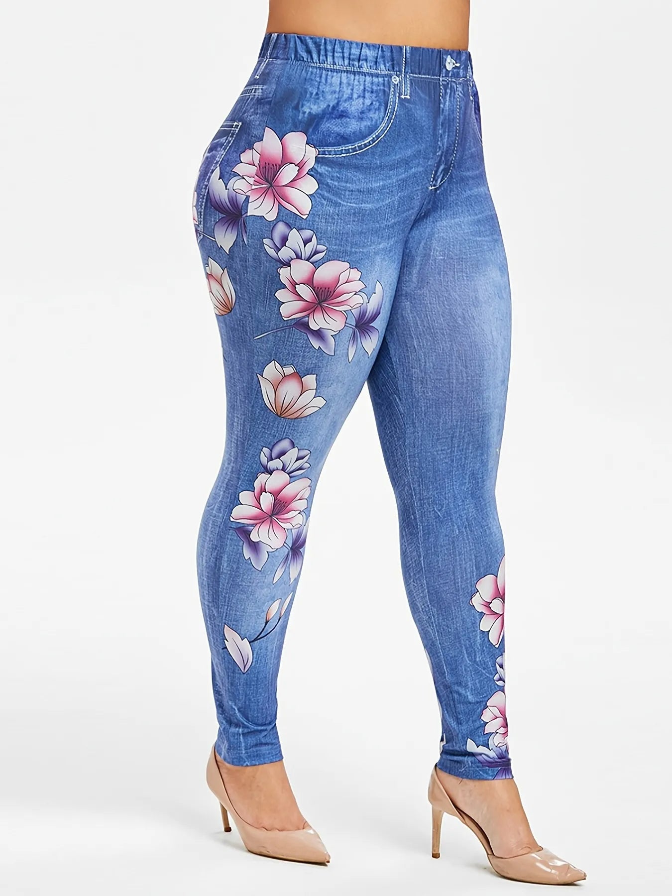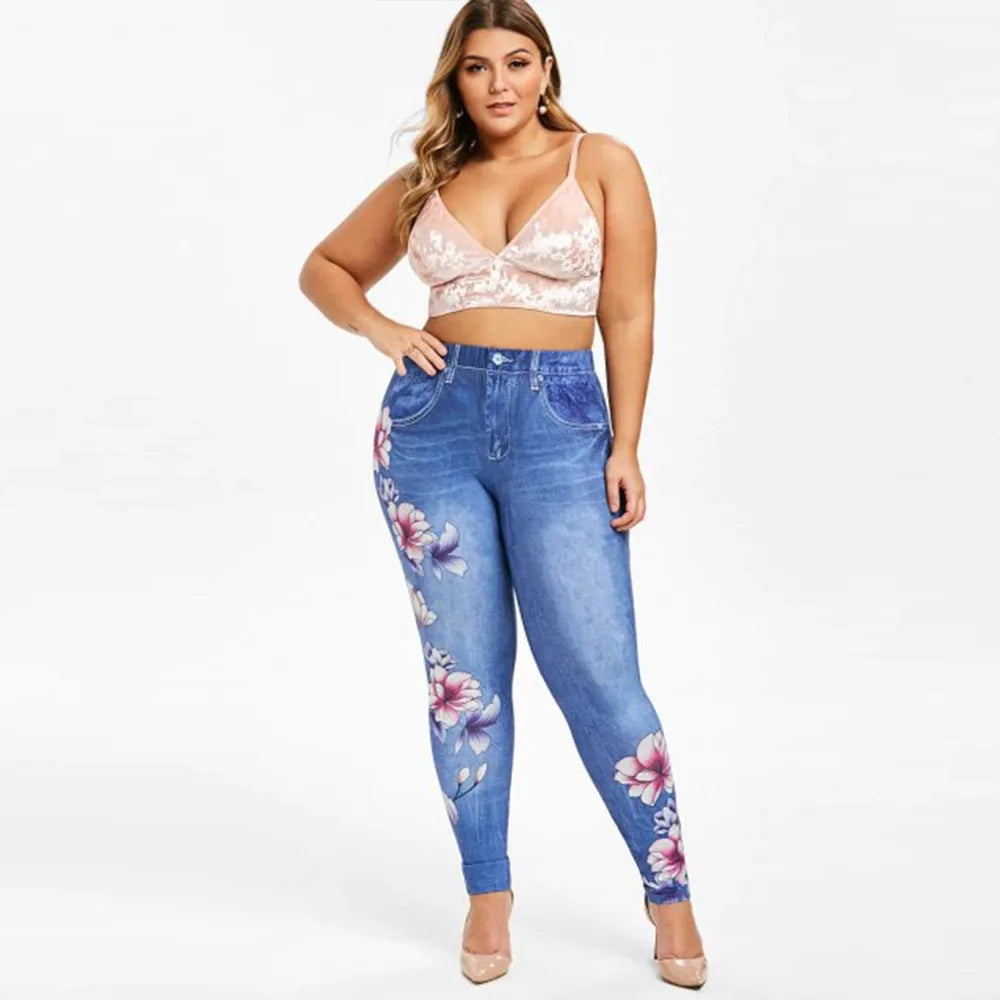 Plus Size Oversized Womens Floral Casual Full Length Slim Jegging Leggings Ladies Winter Skinny Pants Clothing For Female 2023