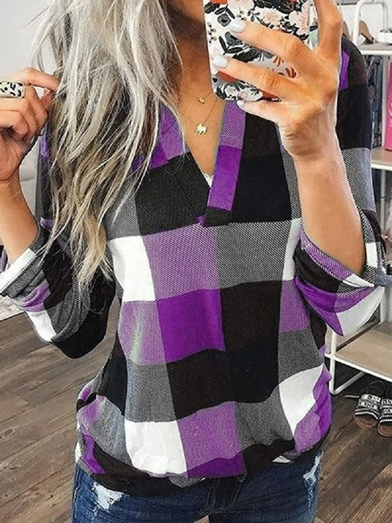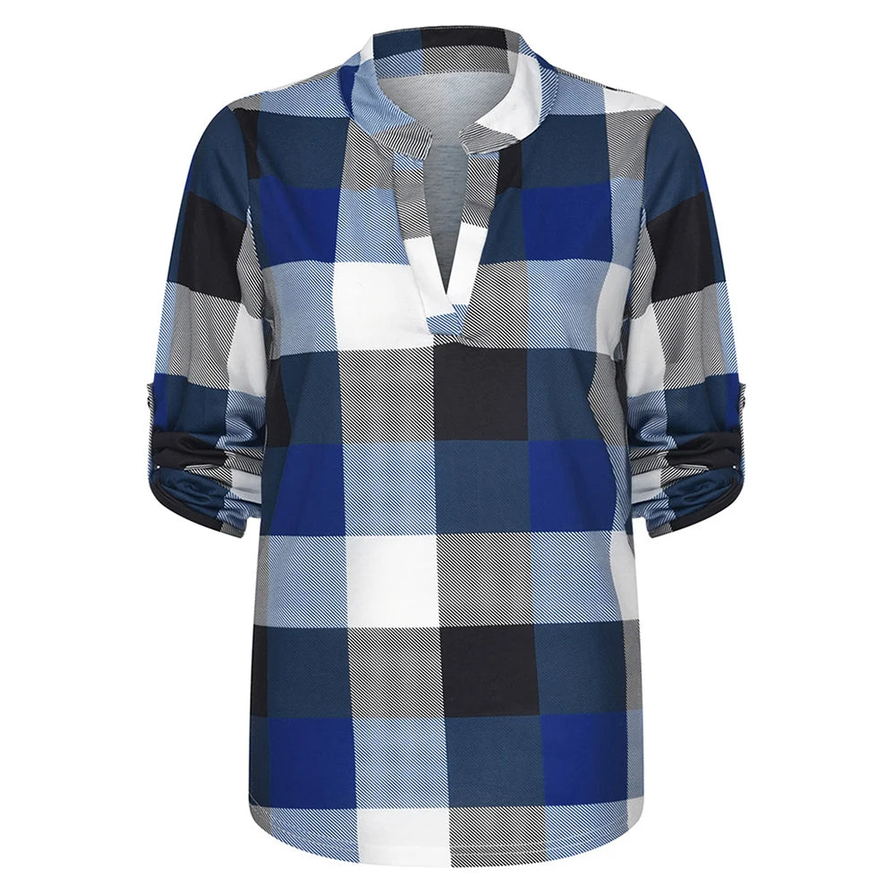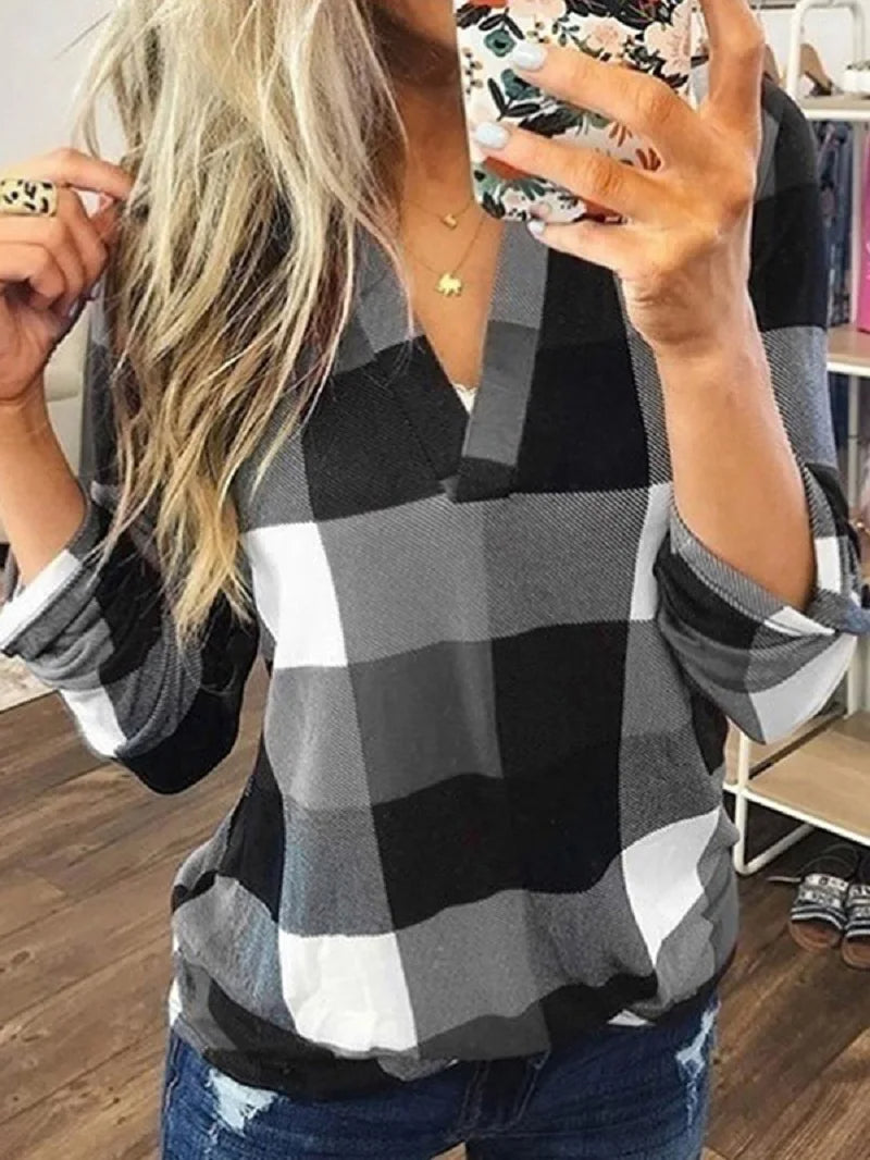 Plus Size Women Autumn Plaid Check V Neck Blouse Shirt Oversize Ladies Long Sleeve Casual Baggy Loose Tops Clothes Clothing 2023