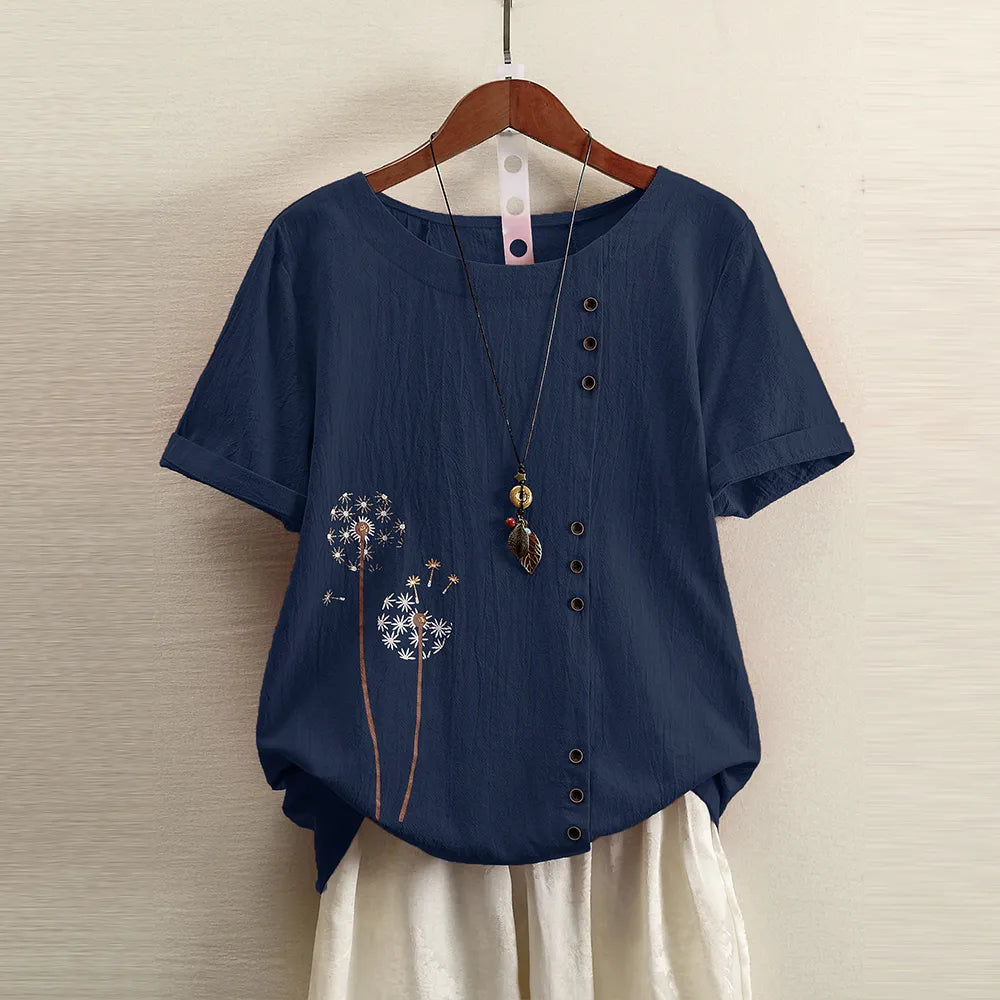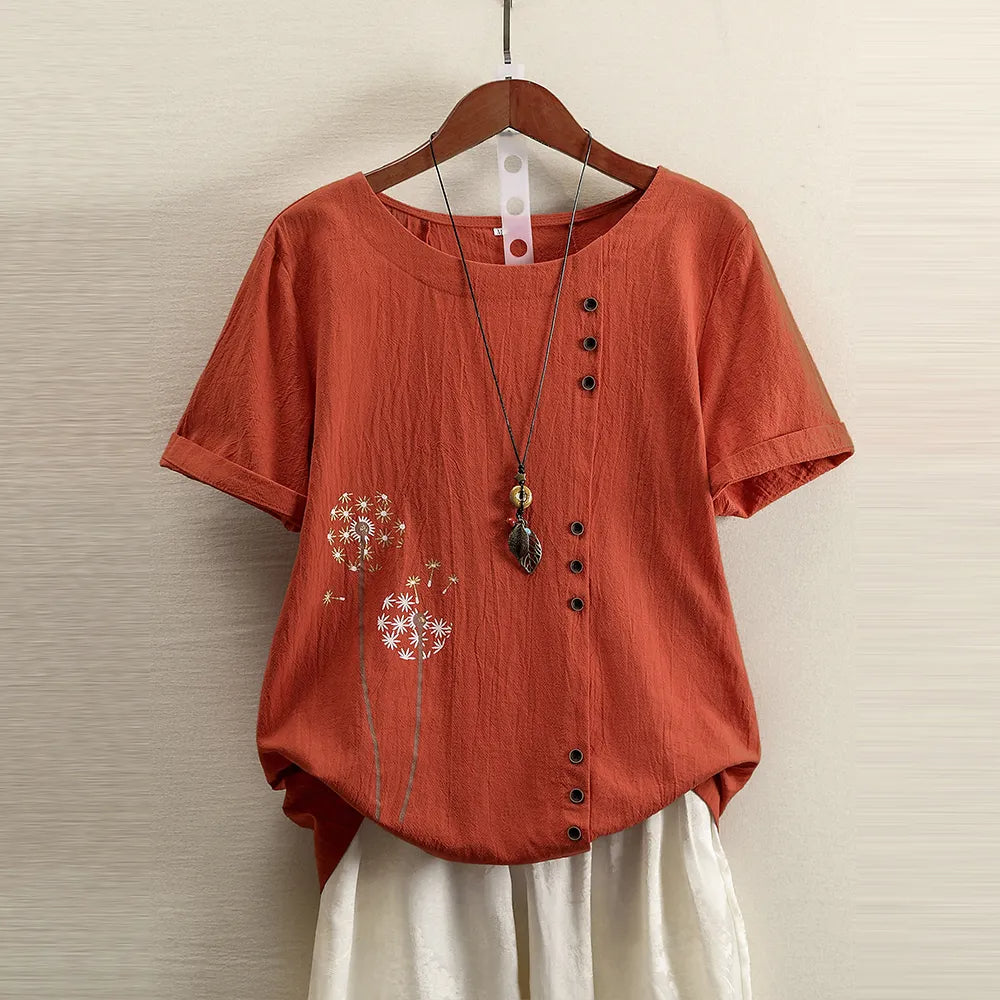 Plus Size Women Short Sleeve O-Neck Print Button Tunic T-Shirt Oversized Ladies Casual High Quality Tops Clothes For Female 2023