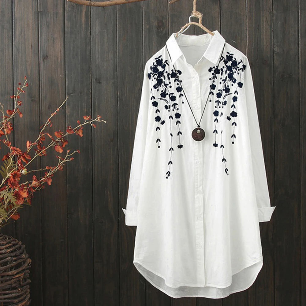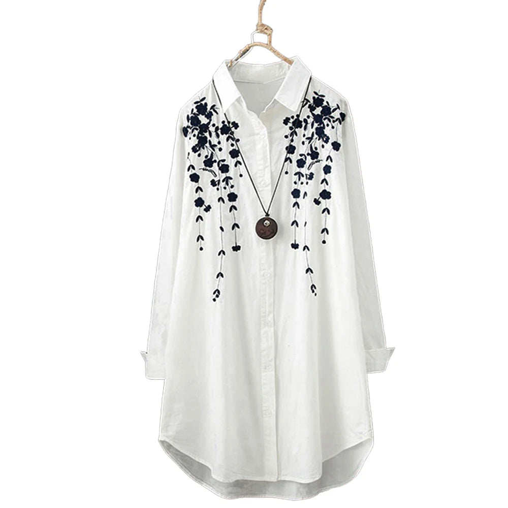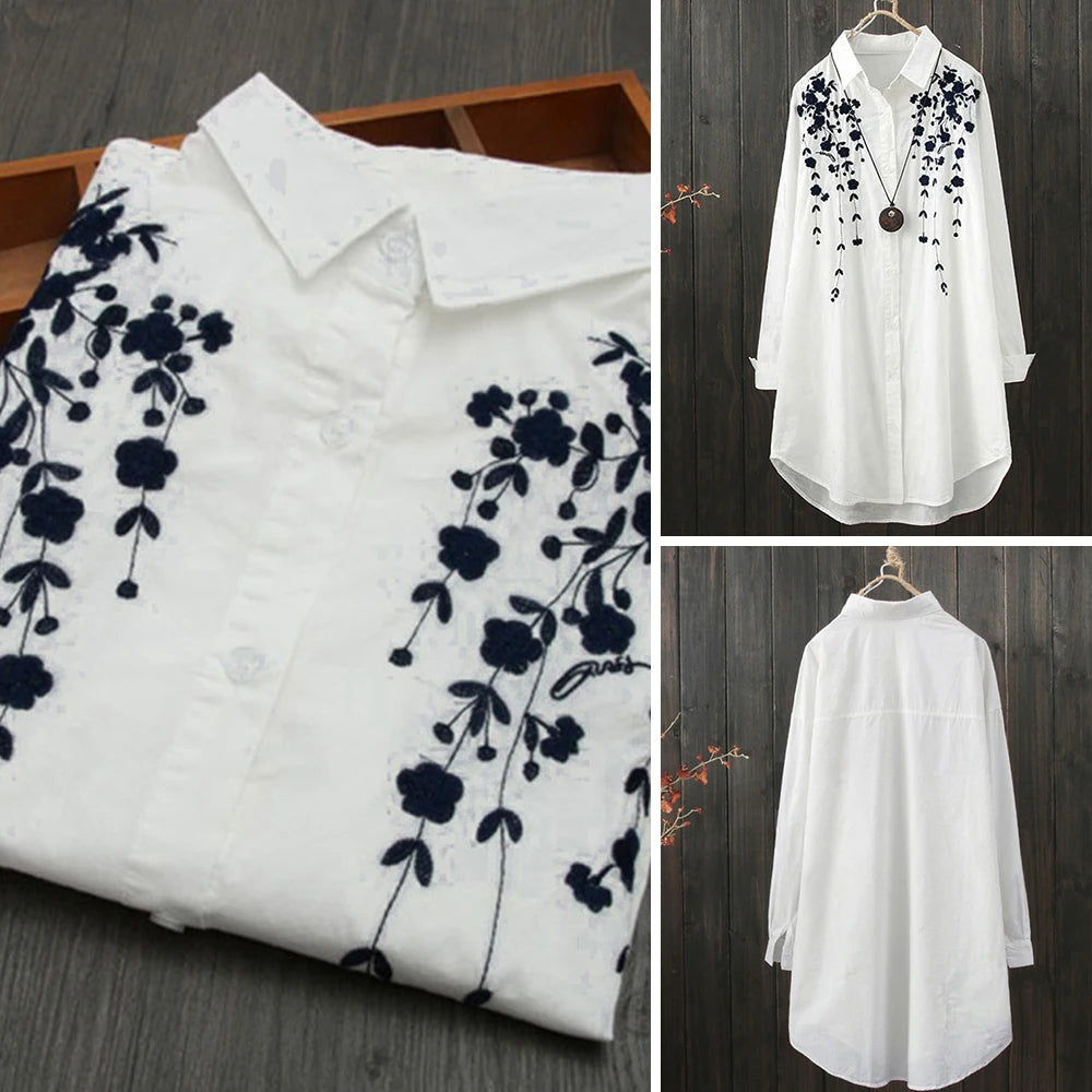 Womens Autumn Winter Button V Neck Print Casual Loose Tunic Top Tee Shirt Blouse Long T-shirt Plus Size 2023