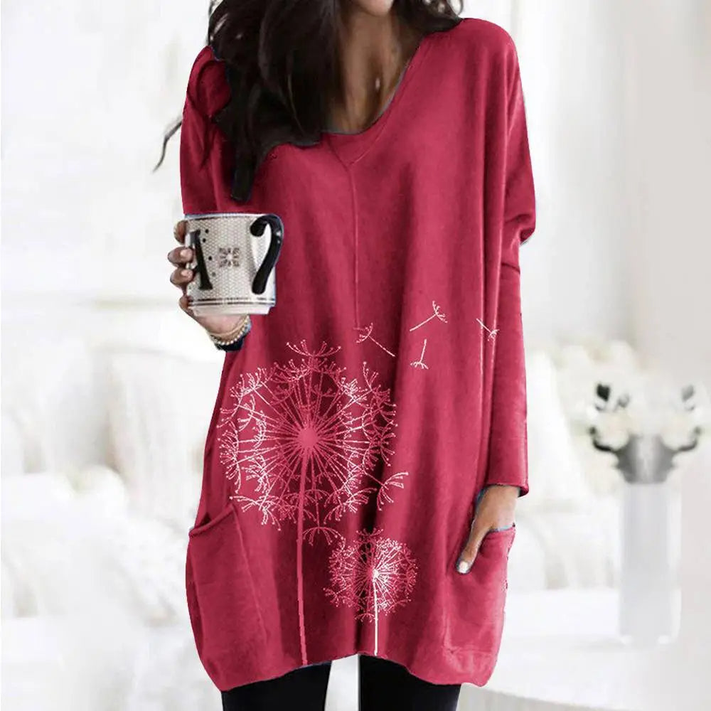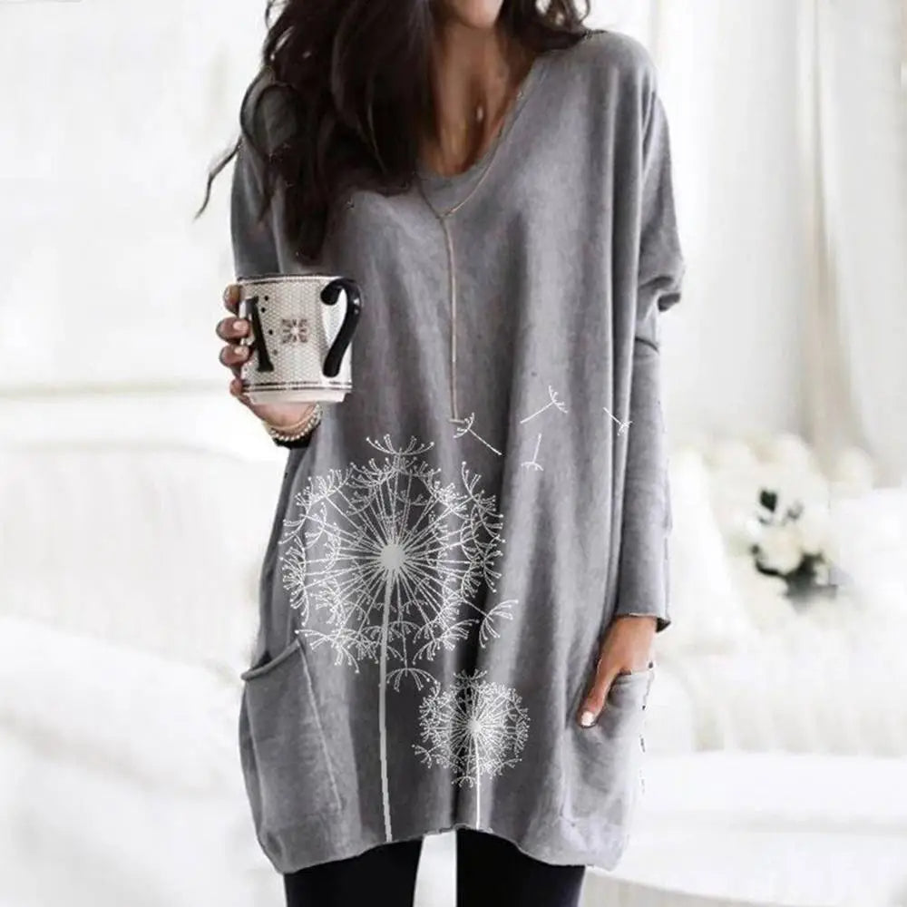 Women's Floral Print Long Sleeve Tunic Tops T-shirt Ladies Casual Loose Blouse Clothing For Female Plus Size Oversized 2023